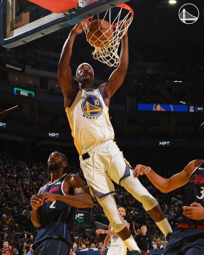 這場比賽是勇士背靠背的第二場,他們在昨夜剛剛以四人20+大勝灰熊,庫裡僅打29分鐘消耗很小,所以勇士保留瞭體能來打快船,而快船的主力10人平均年齡到達33.1歲,所以他們的體能也不佳,開場勇士就用各種防守反擊拖垮快船,庫明加首節(jié)就拿到7分,庫裡首節(jié)也是7分。