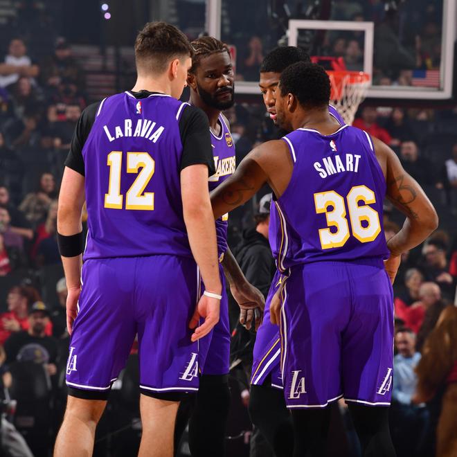 湖人隊首發(fā)陣容:斯馬特、拉拉維亞、克內(nèi)克特、八村塁、艾頓