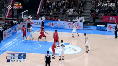 下半場(chǎng)杜鋒繼續(xù)相信先發(fā)一組,經(jīng)過(guò)中場(chǎng)調(diào)整,先發(fā)一組終於找回進(jìn)攻手感,趙睿穩(wěn)定心態(tài)再中三分,周鵬接胡明軒助攻打進(jìn)空籃,沈梓捷反擊再得手,行進(jìn)間趙睿中投再中,廣東打出一波3分鐘9-2領(lǐng)先來(lái)到53-42,接下來(lái)杜鋒提前換人撤下周鵬換上焦泊喬搭配沈梓捷組成雙塔,這波換人調(diào)整一定程度上限制瞭陶漢林。