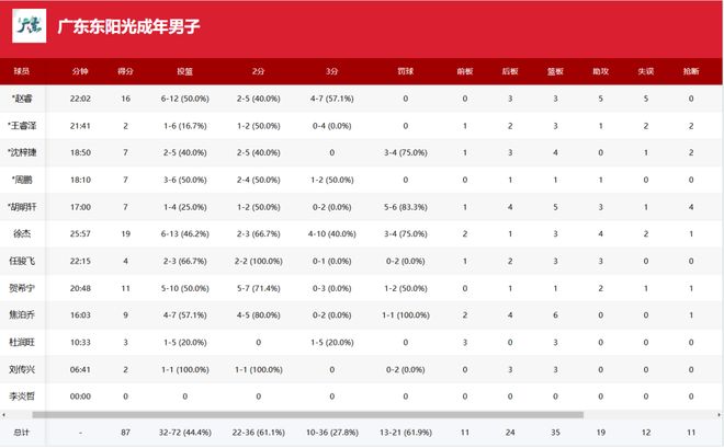 全場數(shù)據(jù),徐傑19分4助攻、趙睿16分3籃板5助攻,賀希寧11分、焦泊喬9分6籃板;山東方面,陶漢林22分12籃板,王嵐嶔14分4籃板4助攻3搶斷、李祥波10分7籃板4助攻。