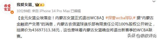 北京時間11月4日,根據(jù)媒體人“我愛女籃”的報道,據(jù)“內(nèi)蒙古金融資產(chǎn)交易”的消息,內(nèi)蒙古農(nóng)信籃球俱樂部有限責任公司100%股權公開轉(zhuǎn)讓,掛牌價為43697313.38元,這也意味著內(nèi)蒙古女籃確定將退出新賽季的WCBA聯(lián)賽。