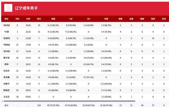 不得不說(shuō),遼寧隊(duì)的強(qiáng)大真是有目共睹的,連上一場(chǎng)6投0中的王化東,此役都靠罰球拿到1分,全隊(duì)6人得分上雙,付豪21分6籃板4助攻,原帥21分2籃板2助攻,高詩(shī)巖15分5籃板9助攻,鄢手騏13分4籃板4助攻,李虎翼12分4籃板,韓德君11分,趙繼偉7分14助攻。