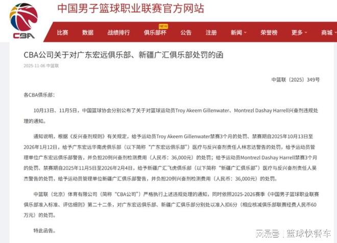 不過,很顯然,他們還是低估瞭籃協(xié)對(duì)於該類事件的重視以及處罰力度。近日,中國(guó)籃協(xié)終於針對(duì)吉倫沃特和哈雷爾開出終極罰單。根據(jù)籃協(xié)開出的罰單顯示,吉倫沃特和哈雷爾都會(huì)被禁賽三個(gè)月。這其中吉倫沃特從2025年10月13日開始執(zhí)行,2026年1月12日結(jié)束。而哈雷爾則從2025年11月5日,到2026年2月4日結(jié)束。不過,由於CBA新賽季開賽延遲,他倆其實(shí)還是能夠趕上新賽季大部分比賽的。