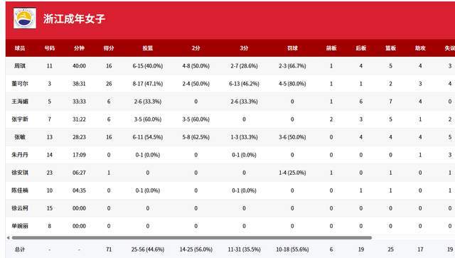 再看浙江隊(duì),沒有萬濟(jì)圓和王佳琦,實(shí)力下降不少,全隊(duì)3人得分上雙,董可爾空砍26分3助攻,周琪16分5籃板4助攻,張敏16分4籃板4助攻。