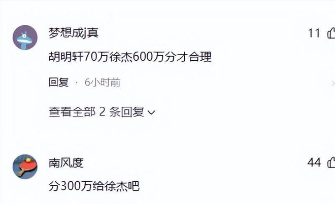 所以有球迷建議到讓胡明軒分徐傑300萬,亦或是連根交換一下薪資才合理。