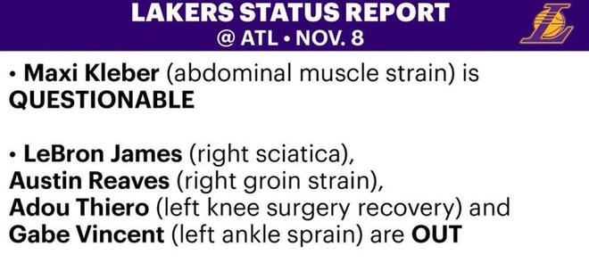 北京時間今日,洛杉磯湖人隊更新瞭傷病名單,球隊主力後衛(wèi)奧斯汀-裡夫斯的傷情由此前右腹股溝酸痛變?yōu)橛腋构蓽侠瓊麑毕魅蘸丝蛻?zhàn)老鷹的比賽。此外,加盟湖人後尚未上演首秀的克勒貝爾出戰(zhàn)成疑。