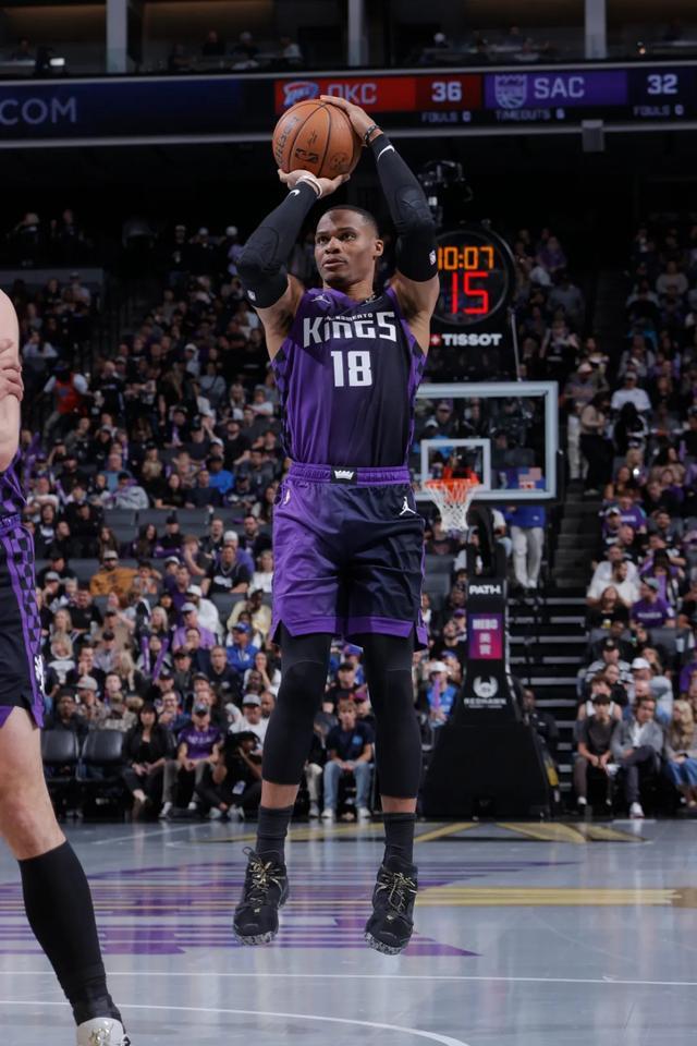 但威少畢竟是威少,讓他隻做一個(gè)功能型的球員還是太單一瞭。所以在首發(fā)陣容裡,威少依然會(huì)承擔(dān)控球組織串聯(lián)的任務(wù),施羅德在場(chǎng)下的時(shí)候,威少就是國王的主控。