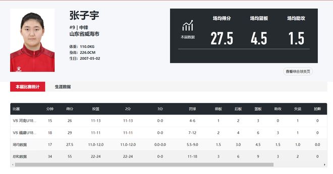 這兩場比賽張子宇合計(jì)隻打瞭34分鐘(四舍五入),24中11,拿到55分9籃板3助攻2失誤2蓋帽,命中率高達(dá)91.66%,說張子宇是女版奧尼爾毫不為過啊。