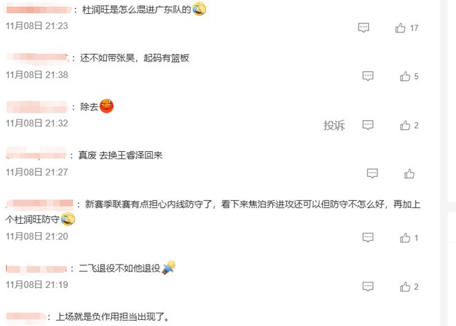 賽後,有不少球迷對(duì)一直在混比賽的杜潤(rùn)旺展開(kāi)瞭“圍攻”,有球迷表示還不如帶張昊,起碼有籃板,也有球迷認(rèn)為二飛退役不如他退役,甚至還有球迷直言,如果下半場(chǎng)不上杜潤(rùn)旺,那廣東隊(duì)早就贏夠37分瞭。