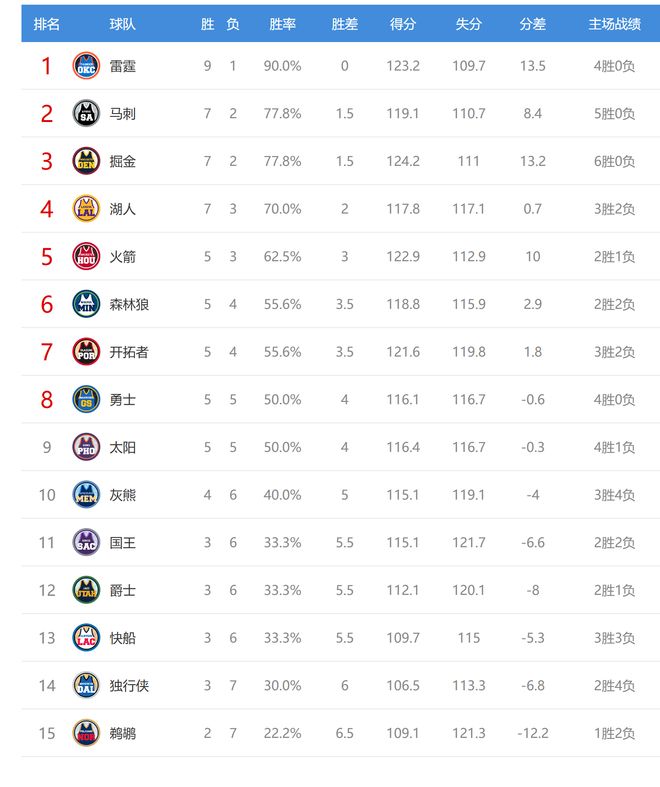 北京時間2025年11月9日,今日NBA有8場比賽,湖人、快船、掘金、馬刺、太陽、獨行俠、開拓者、鵜鶘參與其中,賽後西部排名發(fā)生瞭變化。