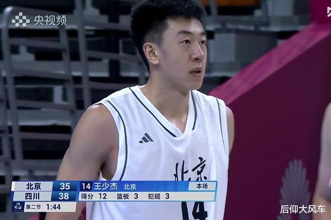 下半場易邊再戰(zhàn),趁著北京內(nèi)線陷入犯規(guī)麻煩,王博趁熱打鐵直接先發(fā)雙塔,這一節(jié)對北京隊相當(dāng)關(guān)鍵,假如范子銘和王少傑有一人被5犯打掉,那麼比賽就隻能被四川帶走,開局孫銘徽一條龍突破再得2分,大秋硬鑿翟曉川輕松打板得分,川隊回敬轉(zhuǎn)換反擊上籃,要命時刻廖三寧再犯錯,先是自己拿球摔倒送失誤,後再遭趙嘉仁搶斷完成上籃,北京被四川打出一波10-2落後10分。