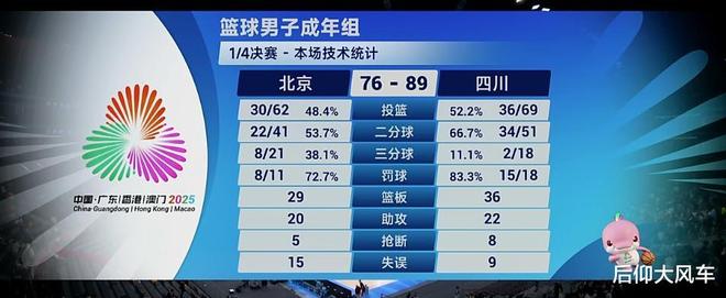 最終,四川隊?wèi){借無解的雙塔(周琦33+14,胡金秋24分),以89-76擊敗北京躋身四強(qiáng)。