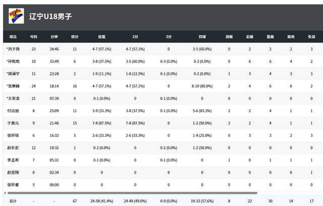 遼寧隊(duì)4人得分上雙,張翀赫16分6籃板,劉子揚(yáng)11分,付遠(yuǎn)旭11分4籃板,於善元15分4籃板。