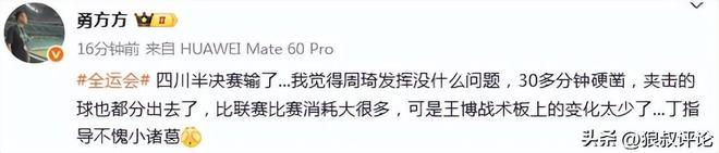 媒體人"盛哲"發(fā)文點(diǎn)評(píng):“四川的輪換和空間問(wèn)題,最終把他們擋在瞭決賽門(mén)前。