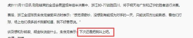 賽後浙江隊(duì)員非常興奮和自豪,代表浙江隊(duì)比賽的朱俊龍嘲諷和調(diào)侃瞭昔日俱樂部隊(duì)友,實(shí)際就是嘲諷和調(diào)侃四川隊(duì)。朱俊龍接受采訪時(shí)表示:“感覺很奇妙,沒想到有能成為對手的一天,隻能說雙方比較熟悉,看他們打球,場上他們很多戰(zhàn)術(shù)我都知道,我不好意思說?!闭劶跋牒蛯O銘徽、胡金秋說些什麼,朱俊龍表示:下次還是把我叫上吧。這明顯是一種調(diào)侃和嘲諷,也就是說四川下次想贏球,還得把我朱俊龍買到四川隊(duì)。這嘲諷,讓代表四川隊(duì)比賽的王博、孫銘徽、胡金秋、趙嘉仁、趙巖昊們感到真的是不好意思瞭。