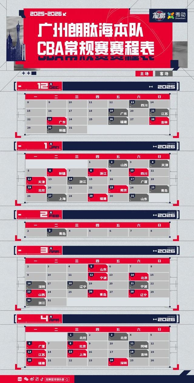 廣州朗肽海本隊(duì)2025-2026賽季賽程調(diào)整公告