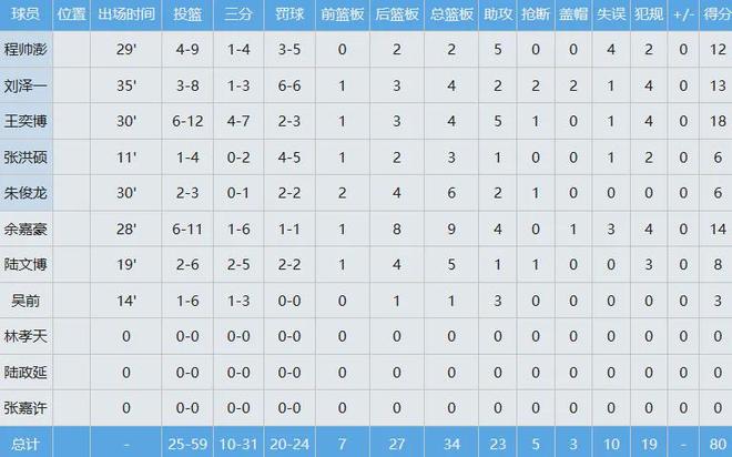 周琦+胡金秋,合砍40分15板都於事無補(bǔ),孫銘徽(投籃21中6)為首的外線群把籃筐砸爛,全隊(duì)三分球27中6,命中率低至可憐的約22%。