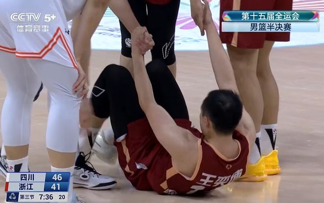第三節(jié)王奕博擠過防守時倒地,膝蓋撞瞭一下。