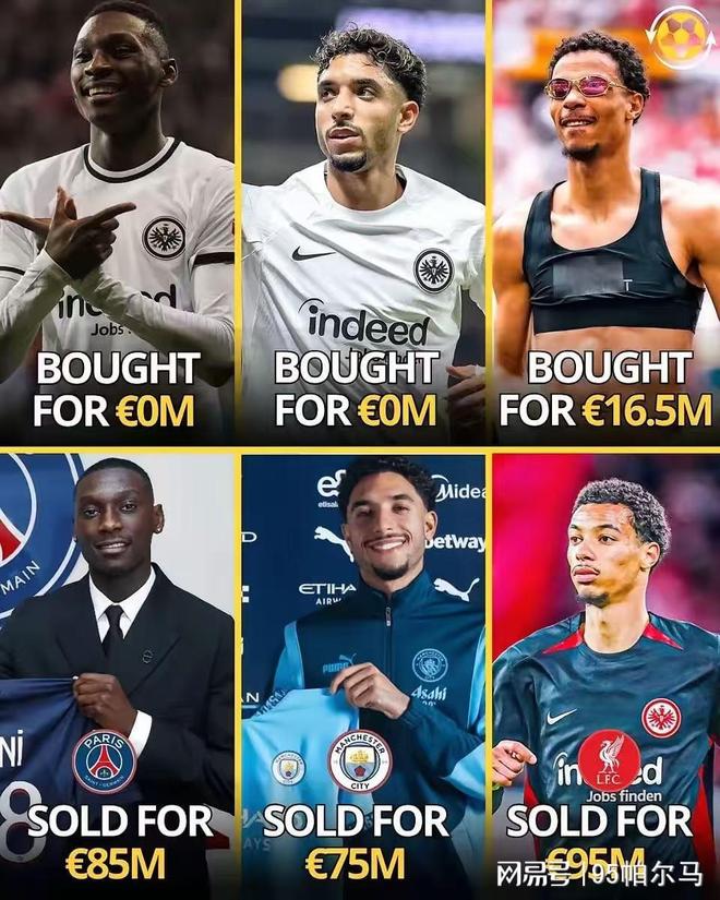 法蘭克福屬于新勢(shì)力的“黑店”。2019年約維奇以6300萬(wàn)歐元轉(zhuǎn)會(huì)皇馬,阿萊以5000萬(wàn)歐元轉(zhuǎn)會(huì)西漢姆,2023年穆阿尼以8500萬(wàn)歐加盟巴黎,2025年馬爾穆什以7500萬(wàn)歐元加盟曼城,?;倏艘?500萬(wàn)歐元加盟利物浦。