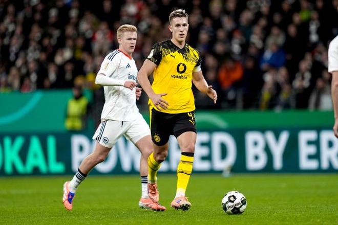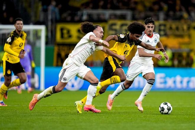 上半場多特始終在對手的高壓逼搶下艱難周旋,第5分鐘,阿德耶米接斯文松下底傳中內(nèi)切推射打偏,成為多特為數(shù)不多的威脅攻勢;而法蘭克福則持續(xù)施壓,第39分鐘泰特弧頂勁射被科貝爾穩(wěn)穩(wěn)沒收,第35分鐘沙伊比的遠射折射出底線,多次考驗多特門將的撲救能力。半場結(jié)束時,多特控球率雖占優(yōu)卻未能轉(zhuǎn)化有效威脅,1-0的比分折射出客場作戰(zhàn)的被動。