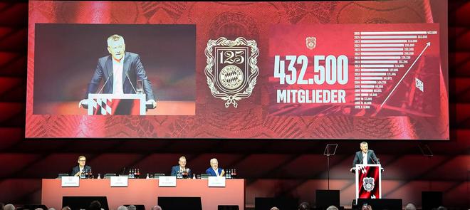 其中,團(tuán)結(jié)協(xié)作尤為關(guān)鍵:眾多專屬活動與各代會員間的透明交流表明,拜仁慕尼黑遠(yuǎn)不止是一家足球俱樂部——它是一個充滿活力的共同體。而且規(guī)模龐大:“拜仁慕尼黑目前擁有432500名會員,是全球會員人數(shù)最多的俱樂部?!?海納說道,并向在場會員呼吁:“你們所有人,都是這個大家庭的一員——我們可以為此自豪!”