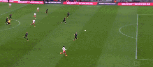 第45分鐘,沙博特門前自擺烏龍,萊比錫1-0斯圖加特
