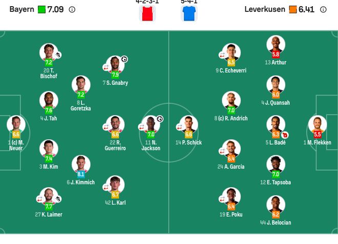 勒沃庫(kù)森首發(fā):1-弗萊肯、4-寬薩、5-巴代、12-塔普索巴、13-阿圖爾、44-貝洛西安(85’17-本·塞吉爾)、24-阿萊克斯·加西亞(46’30-馬扎)、8-安德里希、19-波庫(kù)(56’11-泰里耶)、9-埃切維里(35-科法內(nèi))、14-??耍?6’7-霍夫曼)。