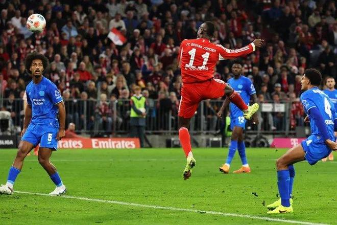 第43分鐘,勒沃庫(kù)森后場(chǎng)傳球失誤被斷,拜仁踢出行云流水的配合,格雷羅左路傳中,巴代下鏟解圍不慎自擺烏龍,拜仁輕松殺死比賽,3-0!