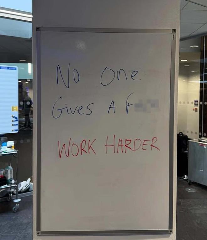 帕爾默表示:“也不管第五張照片上說(shuō)什麼瞭”,照片中展示瞭切爾西基地的一塊白板,上面寫著“沒(méi)人在乎,再加把勁”。