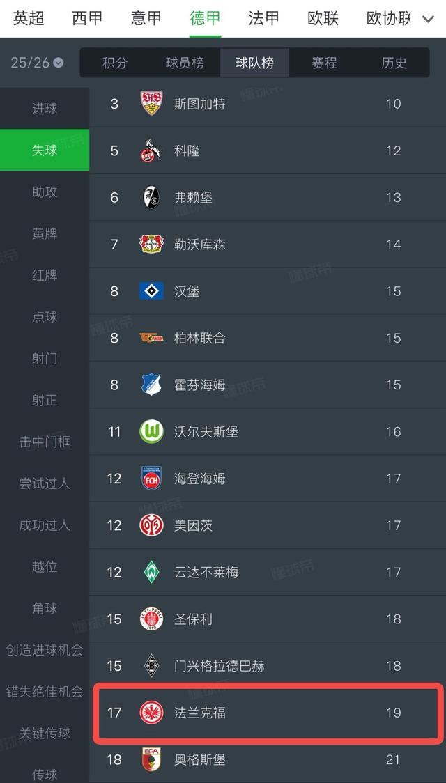 在德甲賽場(chǎng),法蘭克福9輪聯(lián)賽失球19粒,是本賽季德甲失球第二多的俱樂部,奧格斯堡以21粒失球?yàn)榈录啄壳笆蜃疃嗟木銟凡俊?/p>