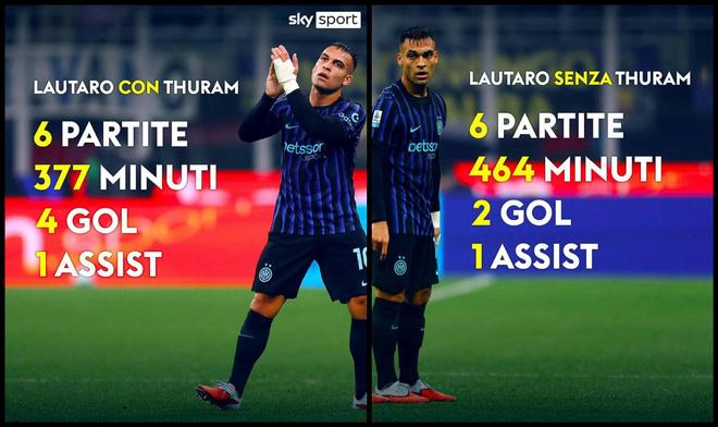 根據(jù)天空體育統(tǒng)計(jì),勞塔羅與小圖拉姆搭檔出戰(zhàn)6場(chǎng)377分鐘,這期間他有4球1助入賬;在沒(méi)有小圖拉姆期間,勞塔羅與另外兩名前鋒搭檔出戰(zhàn)6場(chǎng)464分鐘,卻隻有2球1助入賬,得分效率差距明顯。