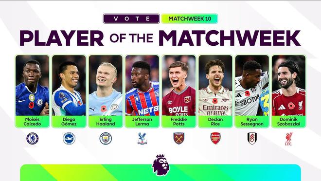 英超第10輪最佳球員候選:賴斯、哈蘭德、索博、凱塞多在列