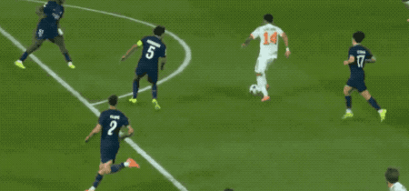 第44分鐘,格納布里腳后跟妙傳,基米希插上的射門(mén)差之毫厘,巴黎門(mén)前風(fēng)聲鶴唳。
