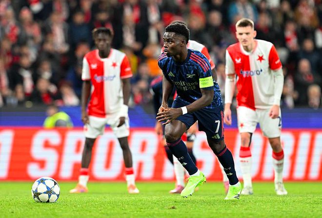 第30分鐘,薩卡開出角球,加布里埃爾頭球攻門,皮球打在普羅沃德的手上,裁判判罰點(diǎn)球。