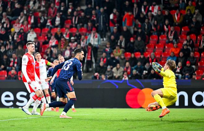 薩卡親自操刀,皮球鉆入死角,這是薩卡連續(xù)4個(gè)歐冠客場(chǎng)破門,創(chuàng)造槍手紀(jì)錄。