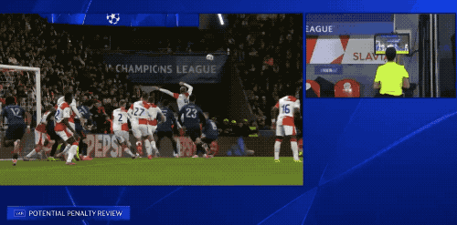 第30分鐘,索博斯洛伊起腳射門,皮球先是打在瓊阿梅尼的膝蓋上,反彈到了手臂上,VAR介入,裁判確定沒有點(diǎn)球。