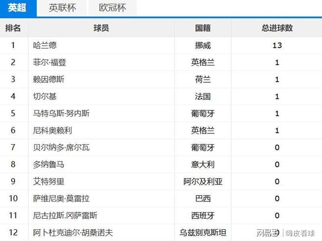 13倍!哈蘭德斷崖式領(lǐng)先,曼城和阿森納,從極致走向另外一個(gè)極致
