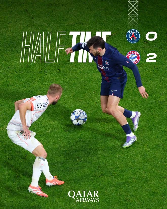 上半場比賽結(jié)束,我們暫時以兩球落后拜仁慕尼黑。