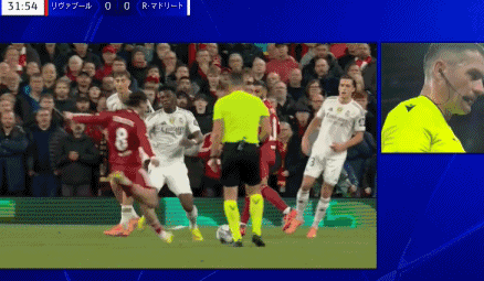 第32分鐘,索博斯洛伊禁區(qū)外勁射,擊中楚阿梅尼的手,利物浦眾將索要點(diǎn)球,但裁判觀看VAR之后認(rèn)為是球打手,并未判罰點(diǎn)球。