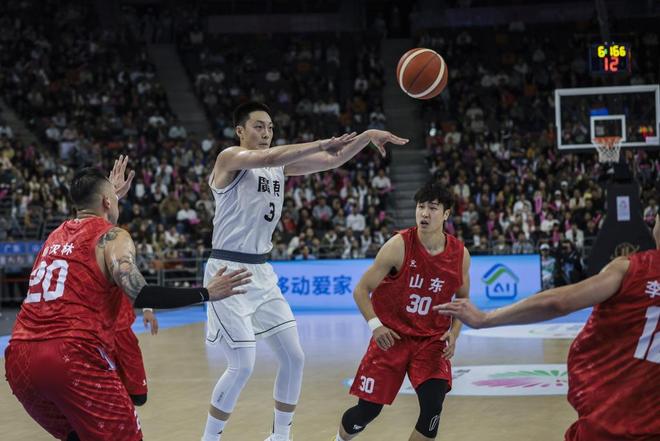 東道主廣東隊(duì)對(duì)陣山東隊(duì),上半場雙方打得難解難分,廣東隊(duì)以44比40略微領(lǐng)先。