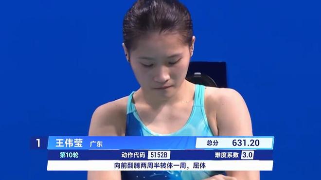跳水項(xiàng)目開賽首日,王偉瑩先是在女子團(tuán)體10米跳臺(tái)比賽中位列榜首,后又與全紅嬋搭檔拿下女子團(tuán)體雙人10米跳臺(tái)比賽第一,助力廣東隊(duì)收獲跳水女子團(tuán)體項(xiàng)目金牌。