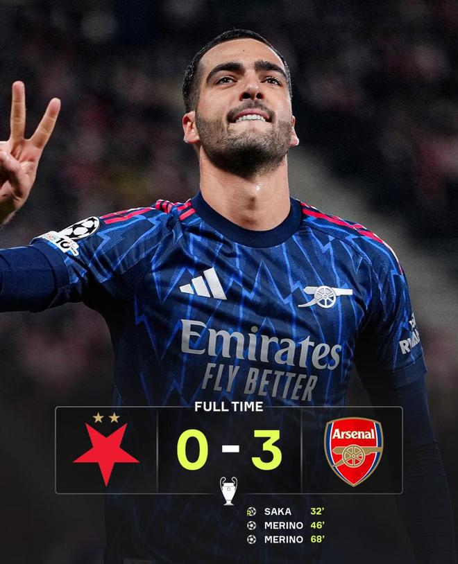 第68分鐘,斯拉維亞門將馬爾科維奇出現(xiàn)低級(jí)失誤,皮球直接被梅里諾斷下,后者推射空門得手,阿森納3-0遙遙領(lǐng)先;梅里諾梅開二度,槍手基本鎖定勝局,最終比分也定格在此,本場槍手獲勝手,創(chuàng)下了幾大紀(jì)錄: