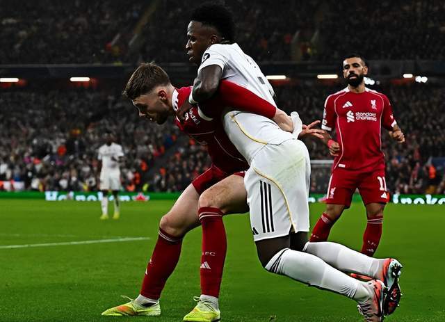 皇馬的3.3億歐元雙槍,占不到任何便宜。22歲的利物浦右后衛(wèi)布拉德利,上演歐冠成名之作,完全鎖死維尼修斯。維尼修斯的招牌技術——加速爆趟、急停急轉、1V1溜底線,在布拉德利面前毫無作用。whoscored給維尼修斯打出5.9分,全隊最低分。