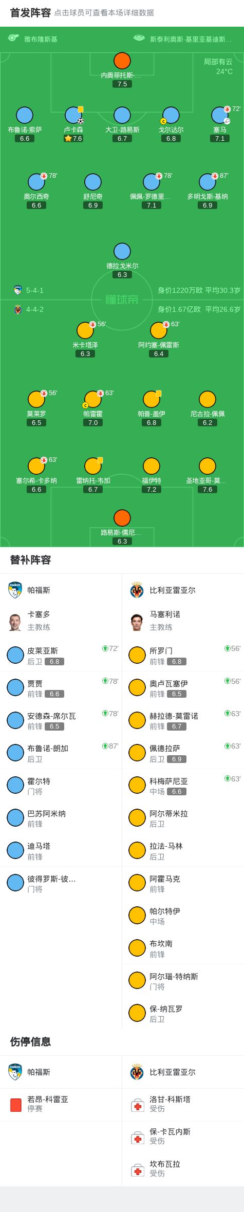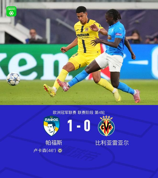 第46分鐘,塞馬開出角球,盧卡森頭球破門,帕福斯1-0比利亞雷亞爾