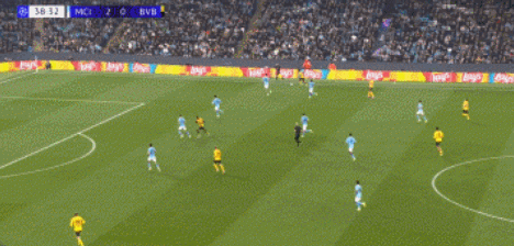 開場之后,曼城依靠主場和實力的雙重優(yōu)勢,進攻端壓著打,多特只能退縮陣型防守,但還是守不住。