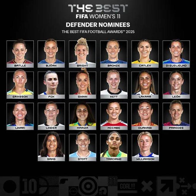 FIFA各項年度最佳候選:王霜&陳晨入選女子最佳陣容候選