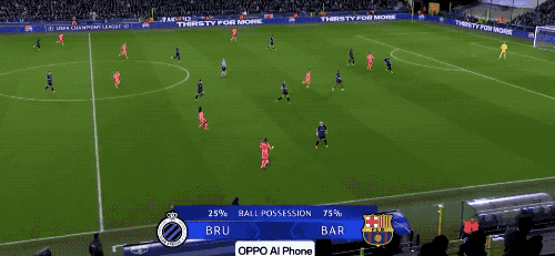 巴薩氣勢如虹,殺得興起,10名球員都壓過半場。第16分鐘,布魯日打出經(jīng)典的快速反擊,從本方禁區(qū)大腳解圍到進球,全部都是一腳傳球。