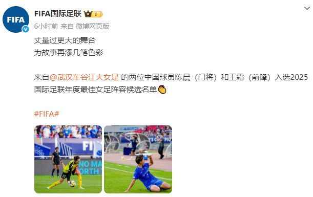 中國(guó)球員陳晨(門(mén)將)王霜(前鋒)入選2025國(guó)際足聯(lián)年度最佳女足陣容候選名單