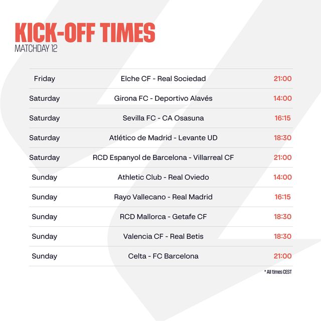 2025/26賽季西甲聯(lián)賽賽程已近三分之一,第12輪爭奪即將打響。本輪多場對決頗具看點(diǎn),尤其皇家馬德里與巴塞羅那雙雙客場作戰(zhàn),挑戰(zhàn)重重。