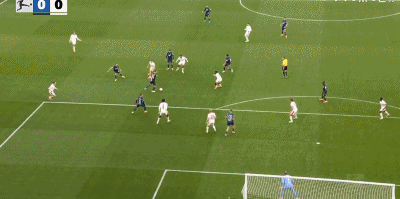 第9分鐘,迪奧曼德扣球后低射破門,萊比錫1-0領(lǐng)先